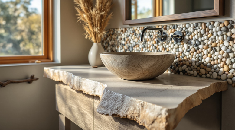 Decor can also play a role in reinforcing the natural theme. Stone trays, woven baskets, or wooden stools provide subtle accents that connect the design without overwhelming it. These small touches allow homeowners to enjoy the outdoors inside, even without a major remodel.